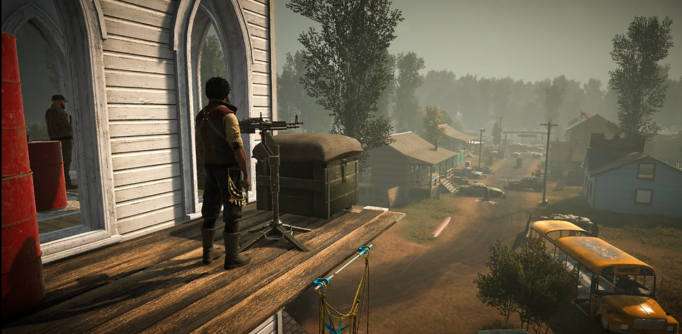 All houses, except for two, are usable for the player to take cover and manage the flow of the battle.